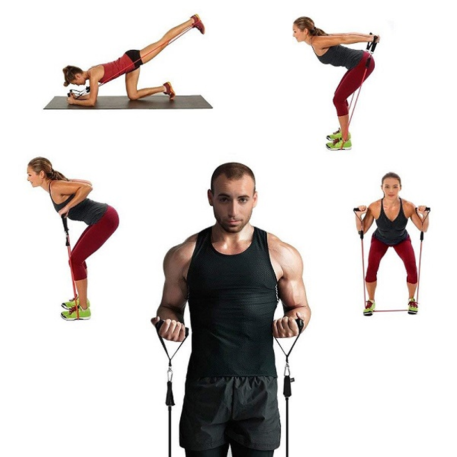 Kit Elastico Extensor 11 Peças Exercicios Fitness Musculação Academia